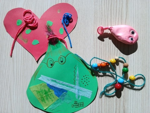 Einen Mutball bastelt man aus einem Luftballon, Klebeaugen und … füllt ihn mit Knete?! Nein, stimmt, das war Puddingpulver. Nicht ganz, ich habe nur klassisches Mehl dabei. Aber hätte ich das vergessen, hätten sich die Kinder auch zu helfen gewusst. Jetzt gehen wir an die Tische und füllen das Mehl durch die abgeschnittenen Flaschen in die Luftballons. Das ist manchmal gar nicht so einfach. Da stopfen wir ein bisschen mit dem Teelöffel nach. Und schütteln ein bisschen. Beim Knoten helfen die Kita-Leiterin und ich. Bei den Klebeaugen auch. Abschließend werden die kleinen Bälle auf das Fensterbrett zum Trocknen gelegt.
